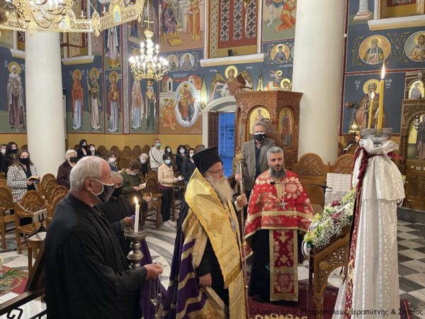 Το απόγευμα της Παρασκευής του Ακαθίστου Ύμνου, ο Σεβ. Μητροπολίτης Ιεραπύτνης και Σητείας κ. Κύριλλος χοροστάτησε και έψαλλε τις δύο πρώτες Στάσεις στον Ιερό Ενοριακό Ναό Αγίου Γεωργίου πόλεως Σητείας, πλαισιούμενος από τον προϊστάμενο και Εφημέριο πρωτ. Νικόλαο Αλεξάκη. Στη συνέχεια μετέβη στον Ιερό Καθεδρικό Ναό Αγίας Αικατερίνης πόλεως Σητείας, όπου χοροστάτησε στην Γ΄ και Δ΄ Στάση του Ακαθίστου Ύμνου, συμπαραστατούμενος από τον προϊστάμενο και Εφημέριο του ναού Πρωτ. Νικόλαο Παθιάκη.