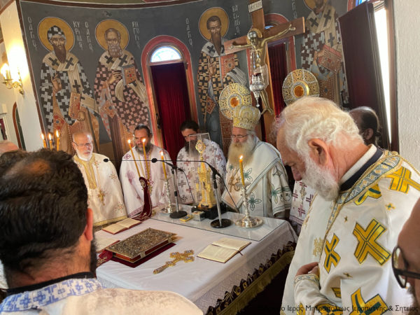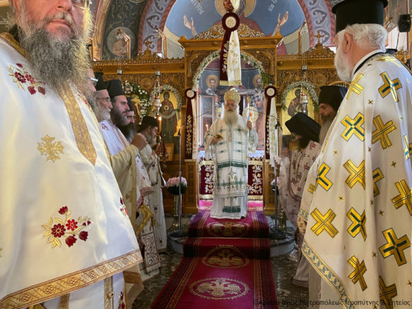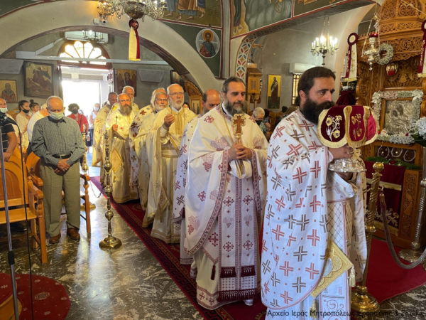 Ανήμερα της πανηγύρεως ο Σεβ. Μητροπολίτης Ιεραπύτνης και Σητείας κ. Κύριλλος χοροστάτησε κατά την ακολουθία του Όρθρου, ευλόγησε τους άρτους και στη συνέχεια ιερούργησε και κήρυξε επίκαιρα τον θείο λόγο, αναφερόμενος στο ιερό πρόσωπο της Παναγίας αλλά και στο θαύμα της παράδοσης του Αρχαγγελικού ύμνου «Άξιον εστίν ως αληθώς…» από τον Αρχάγγελο Γαβριήλ στον ευλαβή Αγιορείτη Μοναχό τον 10ο μ.Χ. αι. στο ιερό Κελλί του «Άδειν» στην Καψάλα του Αγίου Όρους.
