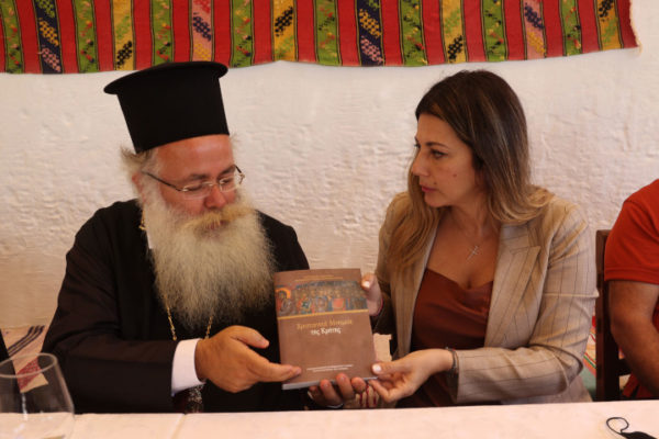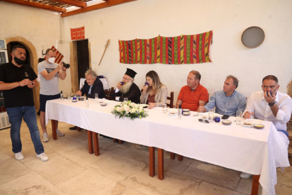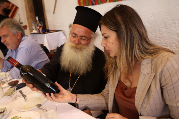 Ακολούθησε γευσιγνωσία ελαιολάδου και κρασιού από τον τεχνολόγο τροφίμων της εταιρίας ΒΙΟΚΑΛΛΙΕΡΓΗΤΕΣ ΣΗΤΕΙΑΣ κ. Νίκο Λαπιδάκη και τον οινολόγο της ΚΤΗΜΑ ΤΟΠΛΟΥ κ. Μάνθο Γιαλιτάκη αντίστοιχα. Η Υφυπουργός και η συνοδεία της είχαν την ευκαιρία να δοκιμάσουν τα υψηλής ποιότητας βιολογικά έξτρα παρθένα ελαιόλαδα ΠΟΠ Σητεία, το Αγουρέλαιο και το «Θείον έλαιον» με τις αυξημένες πολυφαινόλες στην κορυφαία του εκδοχή ποιότητας, τα οποία βραβεύτηκαν στους φετινούς διεθνείς απαιτητικούς διαγωνισμούς ελαιολάδου. Επίσης δοκίμασαν γηγενείς και διεθνείς ποικιλίες βραβευμένων βιολογικών κρασιών, που παράγει και τυποποιεί η Μονή με τις ετικέτες «Σαμώνιον», «Γερτό», «Ληνός», «101 Πόρτες», «Αμάραντον», «Φιλόθεος», καθώς και εκλεκτά αποστάγματα «Τσικουδιά Κρήτης» και «Παλαιωμένη τσικουδιά Κρήτης», τα οποία συνόδευσαν με τοπικά εδέσματα από την παραδοσιακή κρητική κουζίνα και τη μεσογειακή διατροφή.