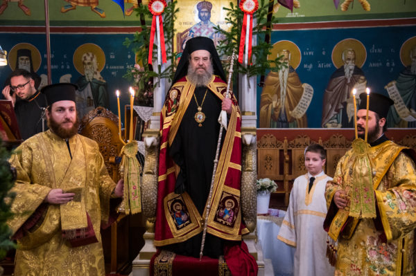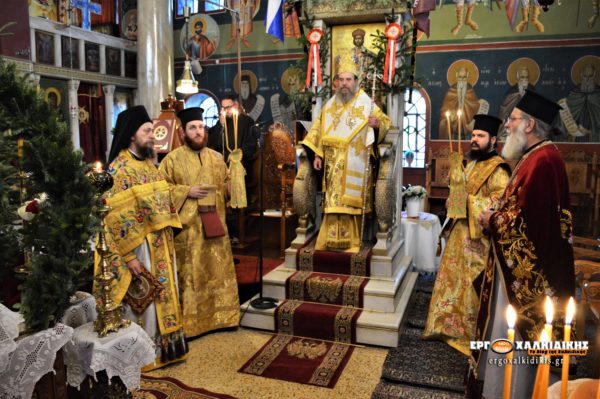 Στον πανηγυρίζοντα Ιερό Ναό Αγίου Βασιλείου της περιωνύμου Κωμοπόλεως της Μεγάλης Παναγίας Χαλκιδικής, ο οποίος έχει καθιερωθεί να είναι τρισυπόστατος και πέραν του Ουρανοφάντορος τιμάται και επ’ ονόματι των Αγίων Μεγάλων Πατέρων της Εκκλησίας μας Ιωάννου του Χρυσοστόμου και Γρηγορίου του Θεολόγου, γιόρτασε ο Σεβασμιώτατος Μητροπολίτης Ιερισσού, Αγίου Όρους και Αρδαμερίου κ. Θεόκλητος την Πρωτοχρονιά, κατά την οποία η Εκκλησία μας τιμά την κατά σάρκα Περιτομή του Ιησού Χριστού και τη μνήμη του Διδασκάλου της Εκκλησίας, Αγίου Βασιλείου, Αρχιεπισκόπου Καισαρείας της Καππαδοκίας του Ουρανοφάντορος του Μεγάλου.