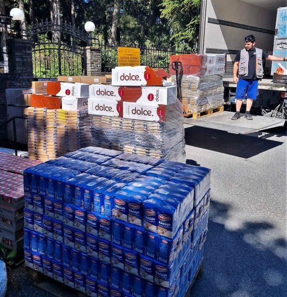 Με εντολή του Βατοπαιδινού Οσιωτάτου Ιερομονάχου π. Ευδοκίμου, η Ιερά Μητρόπολις παρέλαβε στις αρχές του Ιουνίου, για τους μήνες Ιούνιο και Ιούλιο, 500 όρνιθες συνολικού βάρους ενός (1) τόνου και επιπλέον καταναλωτικά αγαθά βάρους πέντε (5) τόνων συνολικά. Ήτοι: 1.200 συσκευασίες φασόλια των 500 γραμμαρίων, 1.200 συσκευασίες φακές των 500 γραμμαρίων, 600 συσκευασίες ρύζι του 1 κιλού, 600 συσκευασίες ζάχαρη του 1 κιλού, 600 συσκευασίες αλεύρι του 1 κιλού, 600 συσκευασίες κριθαράκι των 500 γραμμαρίων, 816 συσκευασίες σπαγγετίνι των 500 γραμμαρίων, 192 συσκευασίες ζυμαρικών των 500 γραμμαρίων, 648 συσκευασίες κοφτό μακαρονάκι των 500 γραμμαρίων, 720 συσκευασίες τοματοπολτού των 500 γραμμαρίων και 600 συσκευασίες κρουασάν πραλίνα των 150 γραμμαρίων.