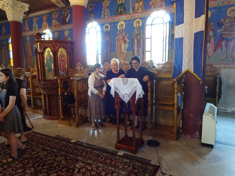 Παρέστησαν πλήθος ενοριτών, με πρώτο τον Πρόεδρο της κωμόπολης κ. Ιωάννη Πετράκη και την Οσιωτάτη Ηγουμένη της Ιεράς Μονής Ευαγγελισμού Ολυμπιάδος Μοναχή Χρυσοβαλάντη, ακολουθούμενη από όλη τη συνοδεία της. Τα αναλόγια τίμησαν ο Πρωτοψάλτης κ. Κοσμάς Παναγιώτου και η μουσικολογιωτάτη κα Σοφία Κοροκσάκου.