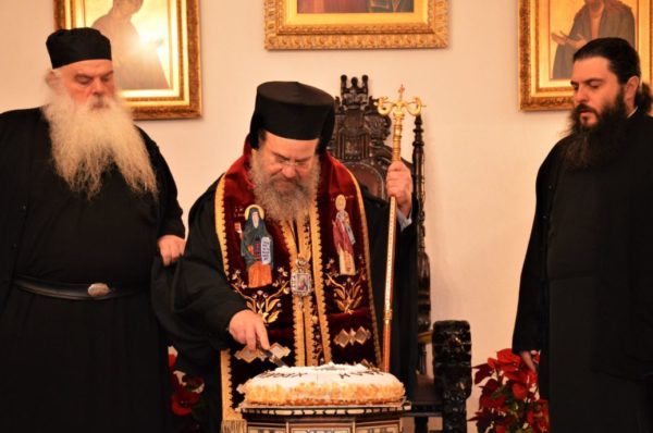 Ακολουθώντας την παράδοση ετών της Εκκλησίας ο Σεβασμιώτατος Μητροπολίτης Ιερισσού, Αγίου Όρους και Αρδαμερείου, κ. Θεόκλητος, έκοψε τη Βασιλόπιτα των Γραφείων της Ιεράς Μητροπόλεως στην αίθουσα του Θρόνου του Μεγάρου της Αρναίας.