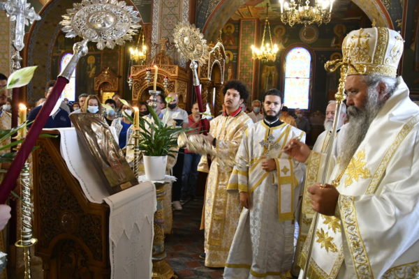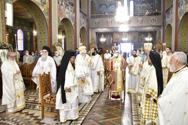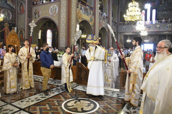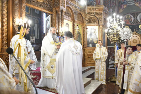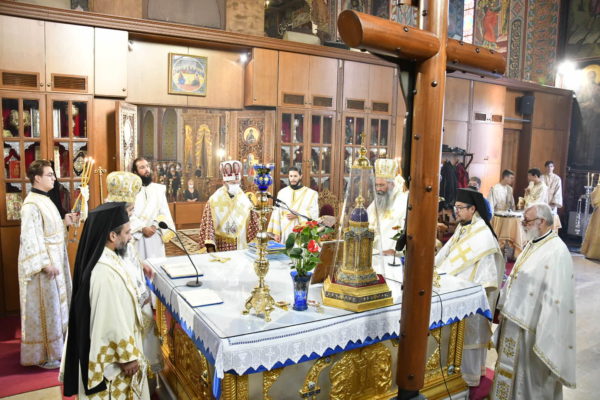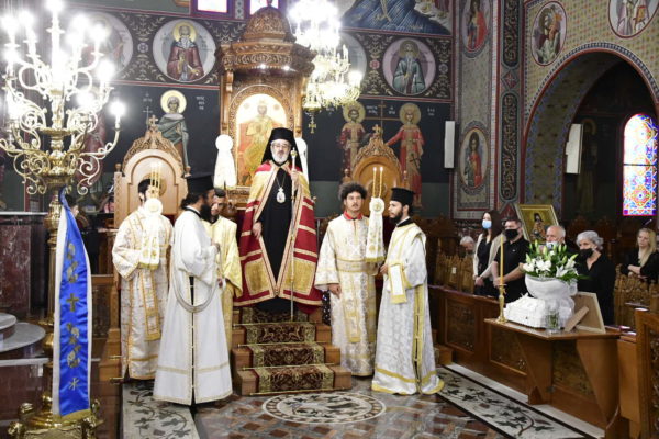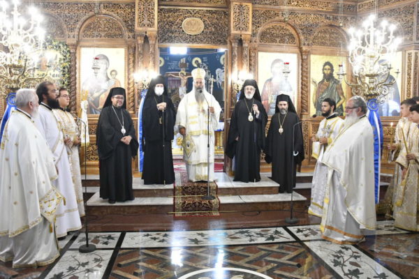 Στο Αρχιερατικό Συλλείτουργο, προεξήρχε ο Σεβασμιώτατος Αρχιεπίσκοπος Τελμησσού κ. Ιώβ (Γενεύη), ενώ συλλειτούργησαν ο Σεβασμιώτατος Μητροπολίτης Τριπόλεως Λιβύης κ. Θεοφύλακτος, οι Θεοφιλέστατοι Επίσκοποι Μυρίνης κ. Αθηναγόρας και Άσσου κ. Τιμόθεος (Λατινική Αμερική) καθώς και ο οικείος Ποιμενάρχης κ. Γεώργιος.