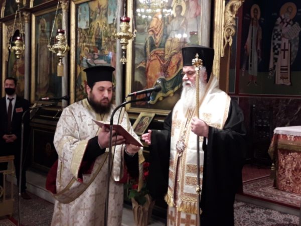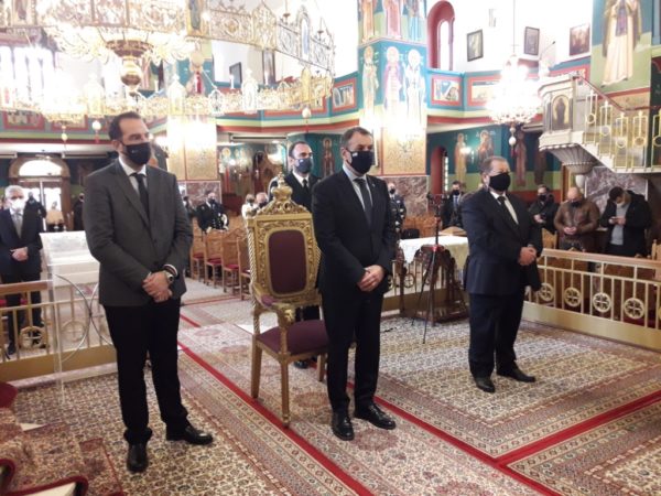 Στη συνέχεια ο Σεβασμιώτατος ευχαρίστησε τον Περιφερειάρχη Ν. Φαρμάκη και τον Δήμαρχο Δ. Καλογερόπουλο, για την άψογη διοργάνωση της σεμνής τελετής της Δοξολογίας.