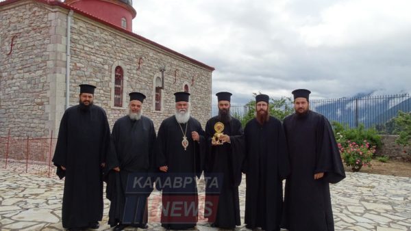 Η χοροστασία έγινε συνοδεία του Γενικού Αρχιερατικού επαρχίας Καλαβρύτων πρωτ. Κωνσταντίνου Μητρόπουλου, του Αρχιερατικού Επιτρόπου Καλαβρύτων πρωτ. Χρήστου Μπίρμπα, του πρωτ. Αθανασίου Γεωργόπουλου, του Αρχιδιακόνου Νήφωνα και του Ιεροδιακόνου Σπυρίδωνα Αλεξόπουλου.
