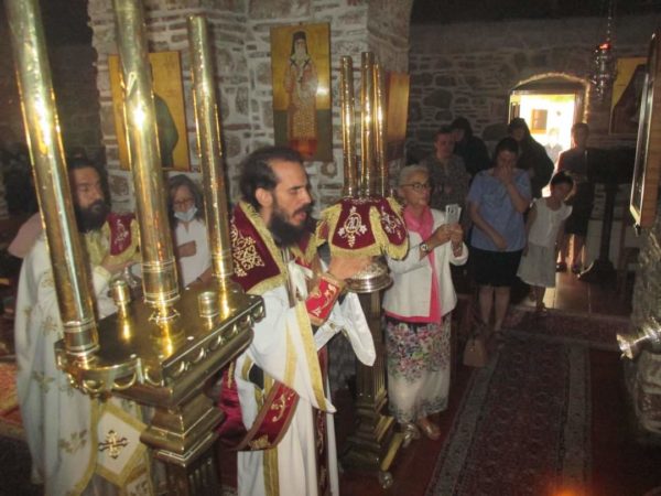 Εκ του αναλογίου της ιεράς μονής έψαλε ο Πρωτοψάλτης του Μητροπολιτικού Ιερού Ναού Αγίου Αθανασίου Κύμης κ. Ευάγγελος Στάμου μετά της μοναστικής αδελφότητος.