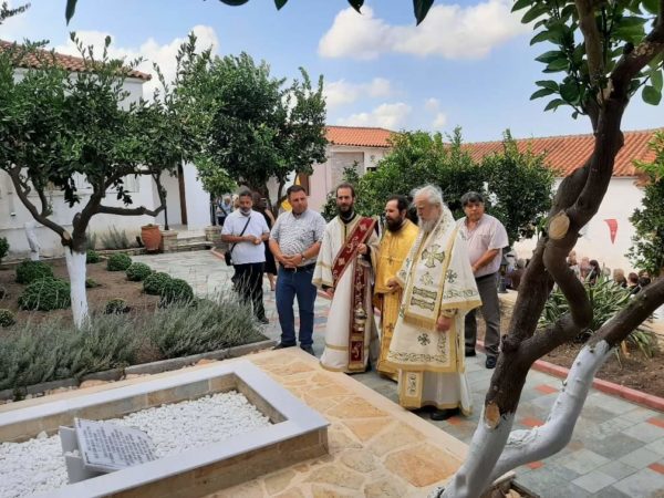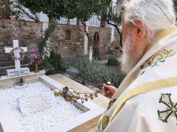 Μετά το πέρας της Θείας Ευχαριστίας ο Σεβασμιώτατος ευχήθηκε προς όλους τους πιστούς και ακολούθως τέλεσε τρισάγιο επί του τάφου της μακαριστής Καθηγουμένης της Ιεράς Μονής, Μακρίνης Μοναχής.