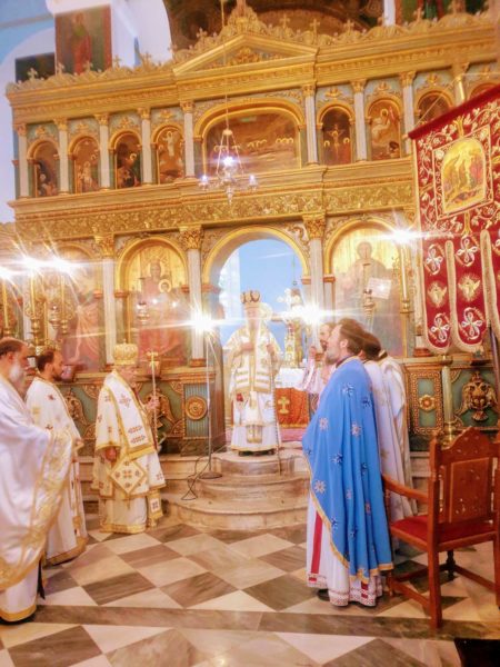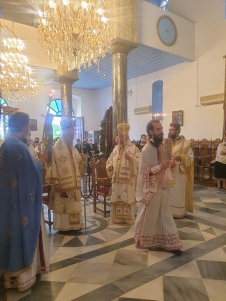 Την δε κυριώνυμο ημέρα της Θεομητορικής εορτής στον προαναφερθέντα ιερό ναό μετέβη ο Σεβασμιώτατος κ. Σεραφείμ, όπου ιερούργησε της Θείας Ευχαριστίας με τον Σεβασμιώτατο Μητροπολίτη Ειρηνουπόλεως κ. Νίκανδρο, με συλλειτουργούς ιερείς και διακόνους.