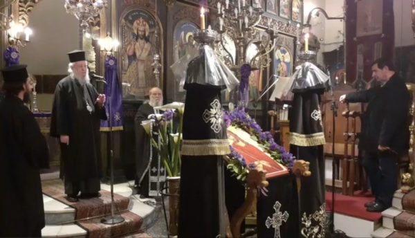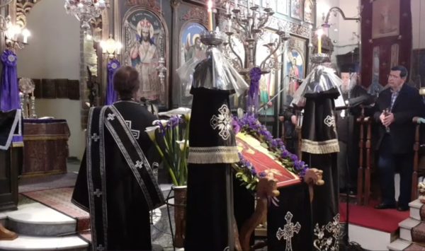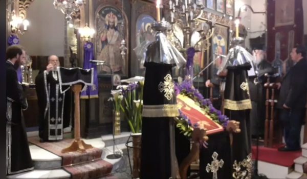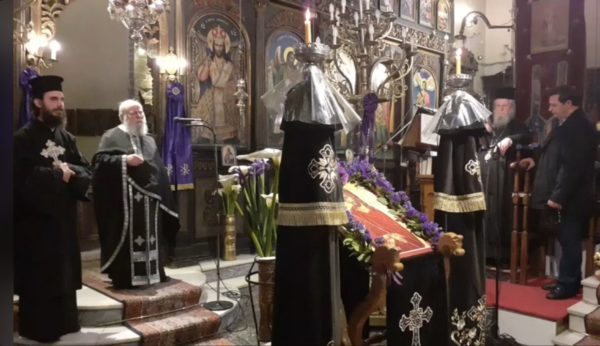 Ιερουργός στην κατανυκτική ακολουθία ο εφημέριος του ιερού ναού Οικονόμος Απόστολος Μπασάνος με τον Διάκονο Στυλιανό Πεταχτή.