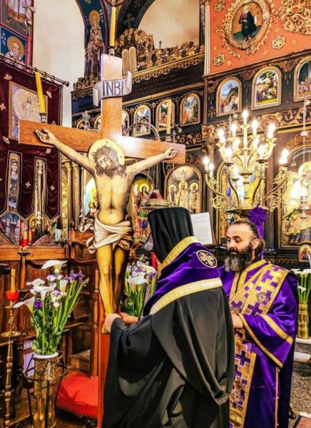 Εν συνεχεία, με την τέλεση των Μεγάλων Ωρών και του Εσπερινού της Αποκαθηλώσεως πριν το πέρας της ακολουθίας εψάλλει ενώπιον του Επιταφίου το επισφραγιστικό δοξαστικό «Σε τον Αναβαλλόμενον», το οποίο απέδωσε ο Σεβασμιώτατος κ. Σεραφείμ με του ιερείς και ιεροψάλτες δίνοντας μία κατανυκτική ατμόσφαιρα ρίγης και δέους προς συμμετέχοντες πιστούς που συμπροσευχήθηκαν στην κατανυκτική ακολουθία στους οποίους ευχήθηκε ο Σεβασμιώτατος.