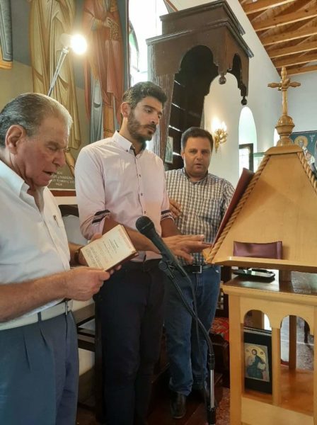 Εκ του αναλογίου έψαλε ο Λαμπαδάριος του ιερού ναού Κοιμήσεως της Κοιμησέως της Θεοτόκου Παναγίτσα Άνω Καλαμακίου της Ιεράς Μητροπόλεως Νέας Σμύρνης κ. Γεώργιος Σταματίου με την συμμετοχή άλλων ιεροψάλτων.