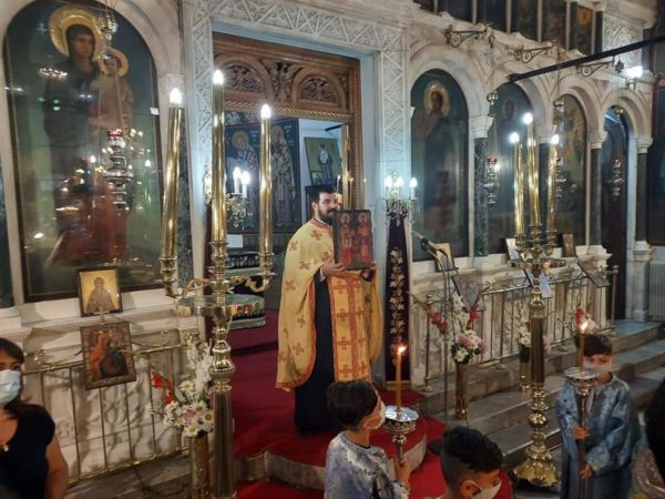 Μετά το πέρας της Αρχιερατικής Θείας Λειτουργίας, ακολούθησε η λιτανεία της ιεράς εικόνος των Αγίων Αναργύρων πέριξ του ιερού ναού, με προεξάρχοντα τον Σεβασμιώτατο κ. Σεραφείμ, την πλαισίωση των ιερέων αλλά και την συμμετοχή των πιστών, που συμμετείχαν στις εορταστικές ακολουθίες, υποδεχόμενοι τον Σεβασμιώτατο στην ενορία της γενέτειρας του.