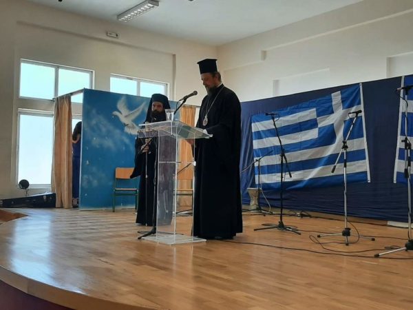 Εν συνεχεία, στην αίθουσα εκδηλώσεων του Δημοτικού Σχολείου Κριεζών πραγματοποιήθηκε η εκδήλωση «Ηρώων Καρυστίας Κλέος», στην οποία ο Πανοσ. Αρχιμ. Νικόδημος Πόγκας, Πρωτοσύγκελλος της Ιεράς Μητροπόλεως Καρυστίας και Σκύρου, απηύθυνε σύντομο χαιρετισμό και παρουσίασε τους ομιλητές.