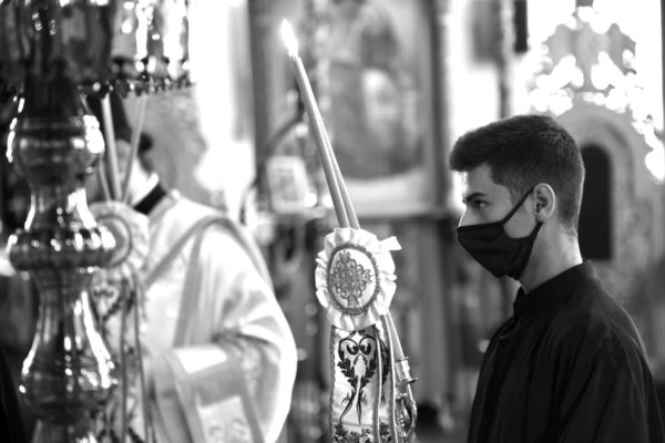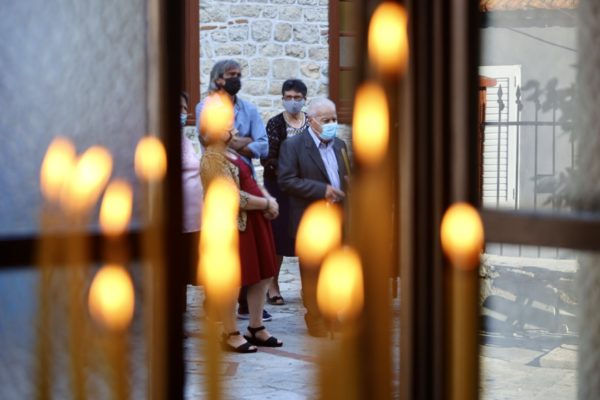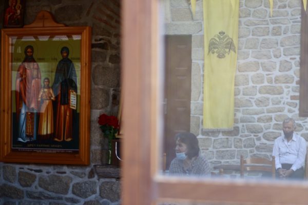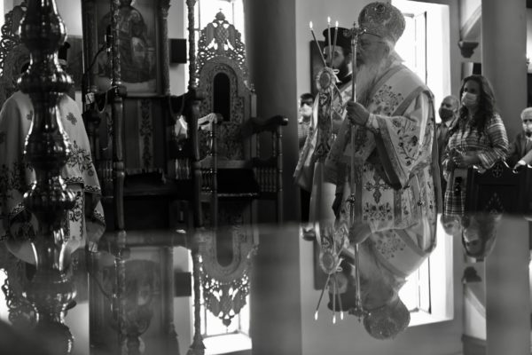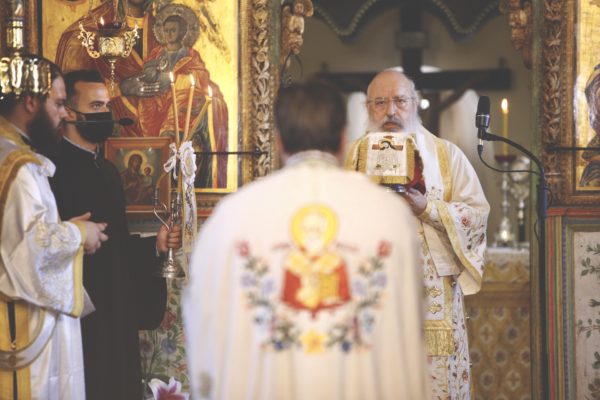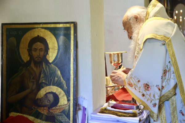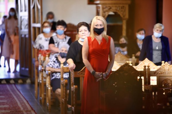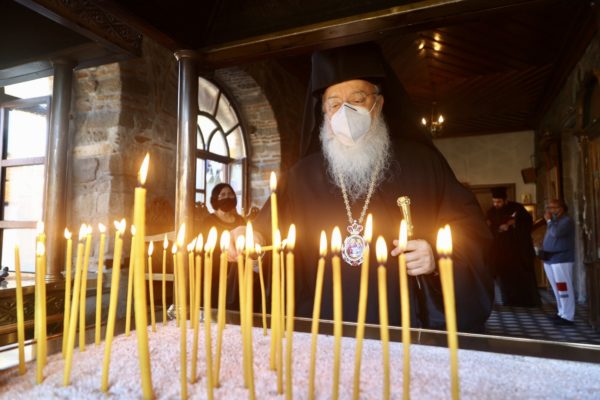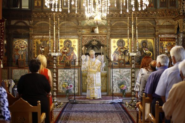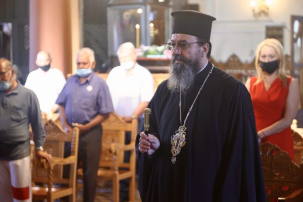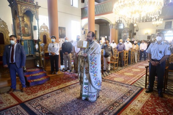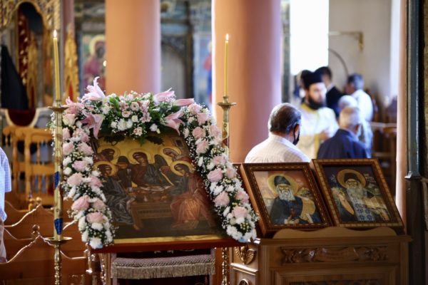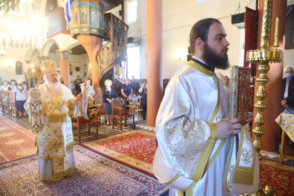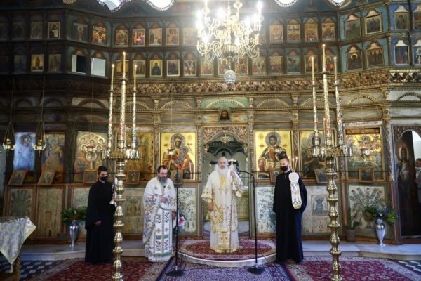 Οι πιστοί συμμετείχαν στον πανηγυρικό Όρθρο και στην Αρχιερατική Θεία Λειτουργία, τηρώντας όλα τα προβλεπόμενα μέτρα για την αντιμετώπιση της πανδημίας του κορωνοϊού.