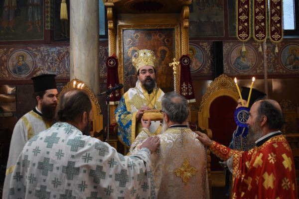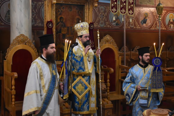 Πριν την απόλυση της Θείας Ευχαριστίας ευλόγησε τα εορταστικά κόλλυβα του Αγίου και μικρά «Βασιλοπιτάκια» τα οποία μοιράστηκαν στους μαθητές των σχολείων του χωριού που βρίσκονταν στον Ναό, για να εκκλησιασθούν. Ο Σεβασμιώτατος αφού εξέφρασε την χαρά του για την παρουσία των μαθητών και μαθητριών, επήνεσε τούς διδασκάλους και τους γονείς τους και τους ευχήθηκε καταλλήλως.