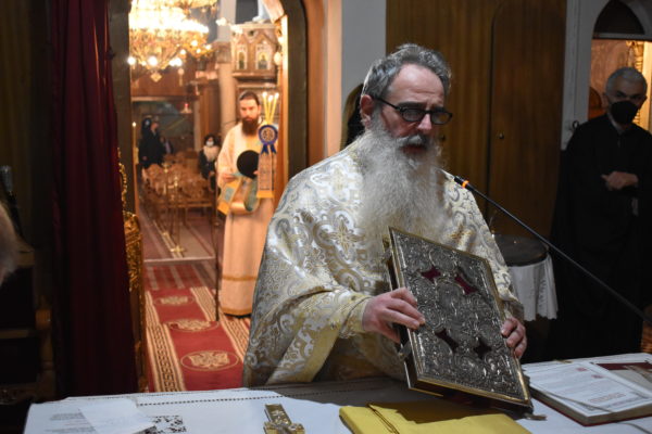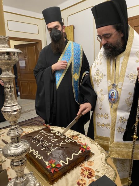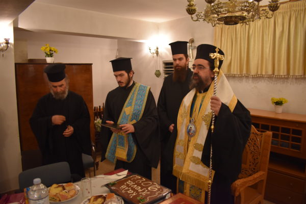 Εν συνεχεία ο Μητροπολίτης ευλόγησε την Βασιλόπιτα τού Εκκλησιαστικού Συμβουλίου, του φιλοπτώχου της Ενορίας και των συνεργατών του Ναού, στην αίθουσα του Ιερού Ναού.