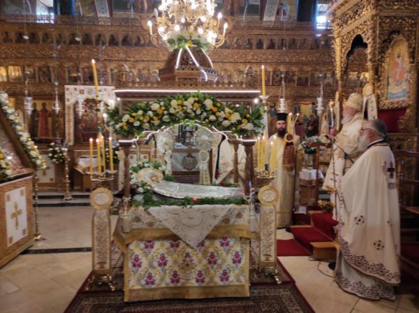 Το θεομητορικό Πάσχα του καλοκαιριού, η Κοίμηση της Υπεραγίας Θεοτόκου, εορτάστηκε με λαμπρότητα σε όλους τους ιερούς ναούς της Μητροπόλεώς μας, ιδιαιτέρως δε σε όσους τιμώνται στο πανάγιο όνομά της. Όπως κάθε χρόνο, επίκεντρο αυτών των εορτασμών απετέλεσε ο περικαλλής Ιερός Μητροπολιτικός Ναός, ο οποίος και φέτος στολίστηκε καταλλήλως με τη φροντίδα του προϊσταμένου αυτού, Αρχιμ. Στεφάνου Σχοινά, των εφημερίων, των επιτρόπων και των εθελοντών, προκειμένου να τιμήσει την Υπεραγία Θεοτόκο, αλλά και να δεχτεί τους προσκυνητές της χάρης της.