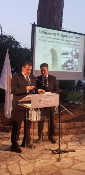 Στη εκδήλωση παρευρέθηκαν οι πολιτειακές και στρατιωτικές αρχές του νησιού, καθώς και ο πρέσβης της Κυπριακής Δημοκρατίας στη Ελλάδα κ. Κυριάκος Α. Κενεβέζος. Χαιρετισμό απηύθυνε ο κ. Αλέξανδρος Γεννηματάς υποδιευθυντής του διπλωματικού γραφείου του υπουργού εξωτερικών κ. Νίκου Δένδια.