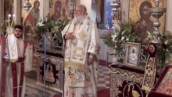 Απευθυνόμενος στους πιστούς ο κ. Νεκτάριος τόνισε η κάθοδος του Αγίου Πνεύματος ήρε τον φόβο από τους μαθητές, οι οποίοι ήταν συνηγμένοι στο υπερώο, ένας φόβος που προερχόταν από το γεγονός του μαρτυρίου του Χριστού επάνω στον σταυρό, από την απόρριψη της πίστης από την ιουδαϊκή θρησκευτική ηγεσία, από το ανέτοιμον των μαθητών να αναλάβουν με τις δικές τους δυνάμεις το έργο της σωτηρίας του κόσμου.