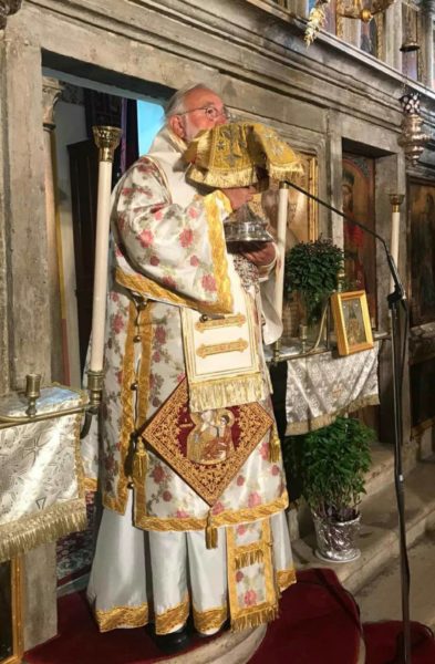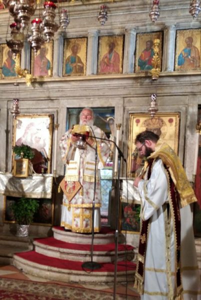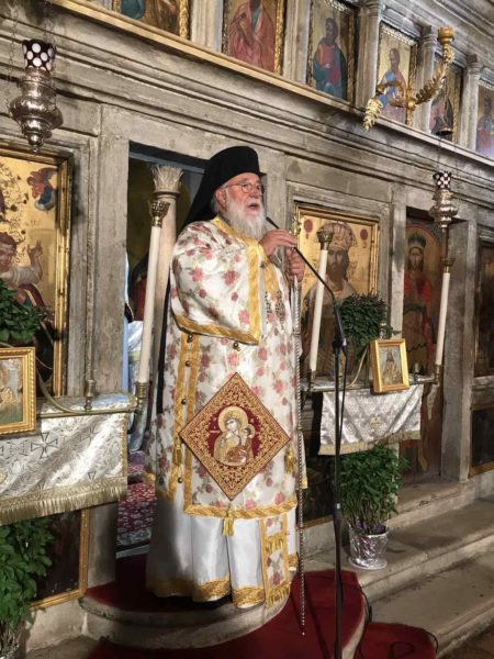 Κατά τη Θεία Λειτουργία ο Σεβασμιώτατος έλαβε αφορμή για το κήρυγμά του από το Ευαγγελικό και Αποστολικό ανάγνωσμα, τα οποία αναφέρονταν στο μυστήριο του Σταυρού, το οποίο πρόκειται μετά από δυο ημέρες να εορταστεί με την Παγκόσμια Ύψωση του Τιμίου Σταυρού.