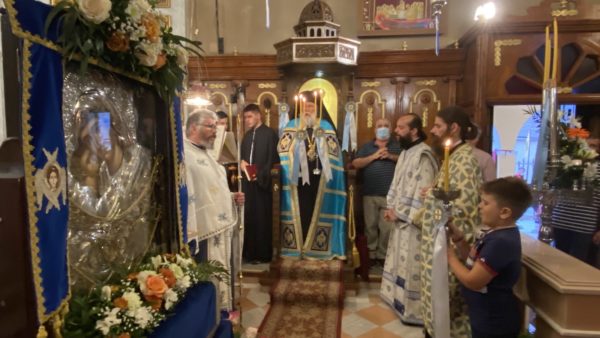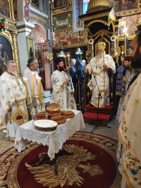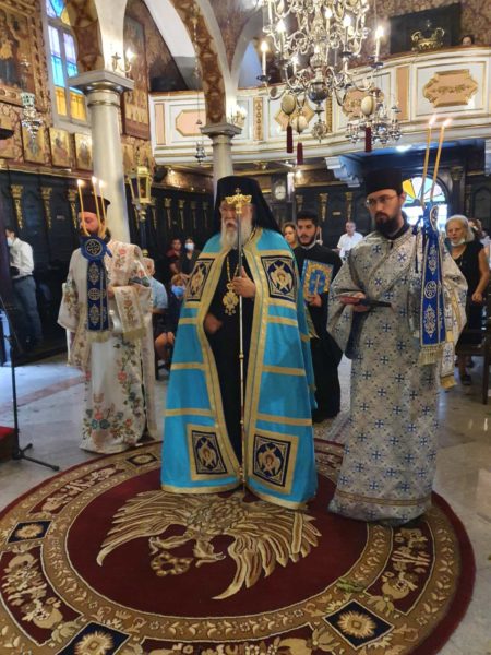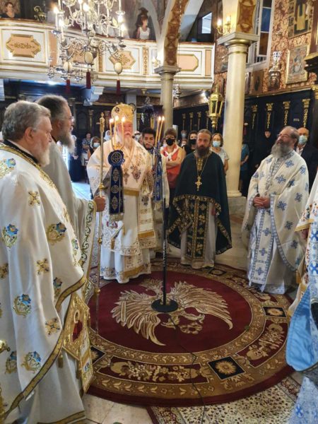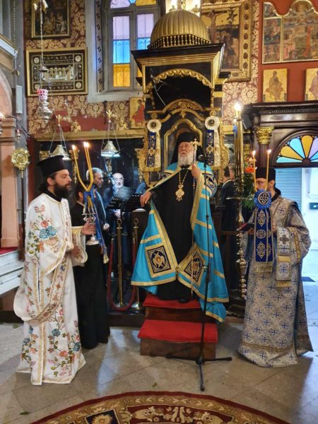 Ανήμερα της εορτής, ο Σεβασμιώτατος λειτούργησε στον πανηγυρίζοντα Ιερό Ναό της Παναγίας Φανερωμένης (Παναγίας των Ξένων), στο ιστορικό κέντρο της πόλης της Κέρκυρας.