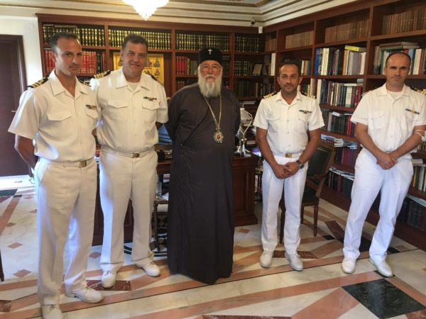 Ο Σεβασμιώτατος Μητροπολίτης Κερκύρας & Παξών κ. Νεκτάριος, ανταπέδωσε την πρωινή εθιμοτυπική επίσκεψη στα γραφεία της Ιεράς Μητροπόλεως, του κυβερνήτου Κωνσταντίνου Πετρούλια του οχηματαγωγού πλοίου “Ρόδος” του Πολεμικού Ναυτικού, των αξιωματικών μετά του διοικητού του Ναυτικού Σταθμού Κερκύρας (ΝΑ.Σ.ΚΕ) κ. Θεόδωρου Δημητρακόπουλου.