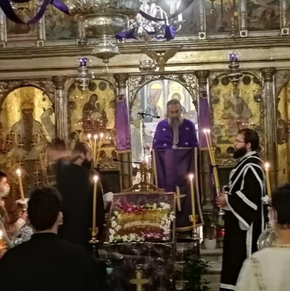 Προσφωνώντας τους πιστούς ο κ. Νεκτάριος, αφορμήθηκε από το στιχηρό « Συντρέχει το συνέδριο των Ιουδαίων» . Τόνισε ότι ο άκτιστος Θεός υπέφερε και καταδικάστηκε από τον κτιστό άνθρωπο, από το μίσος και την κακία του παρανόμου συνεδρίου. Έζησε την προδοσία από έναν δικό Του, τον Ιούδα.
