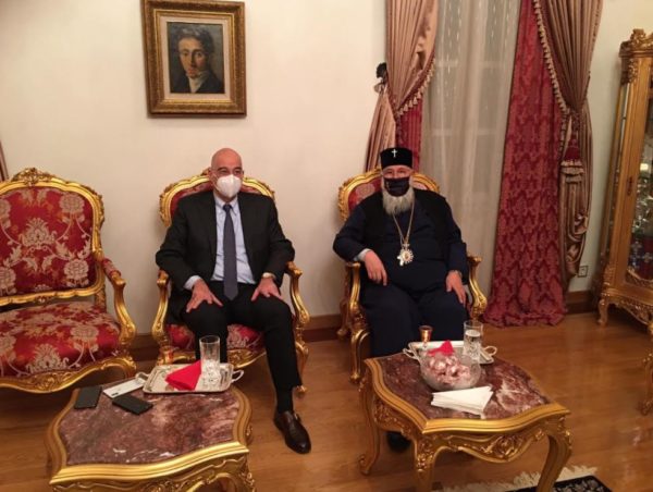 Ο Μητροπολίτης και ο Υπουργός Εξωτερικών είχαν ημίωρη συνάντηση και συζήτησαν για τις προσπάθειες του κ. Δένδια και της ελληνικής κυβερνήσεως ώστε η πατρίδα μας να κατοχυρώσει την θαλασσογραμμή της, ενώ ο κ. Νεκτάριος συνεχάρη τον υπουργό για τον πατριωτισμό του, την δυναμική του στάση και τον αγώνα του να διαφυλαχθούν τα δίκαια της Ελλάδος. Ο κ. Δένδιας ευχαρίστησε τον Σεβασμιώτατο Μητροπολίτη Κερκύρας για την αγάπη και την τιμή προς το πρόσωπό του και εξέφρασε την μεγάλη του χαρά που η Κέρκυρα δείχνει τη αγάπη της προς το πρόσωπό του, όπως επίσης και η τοπική Εκκλησία.