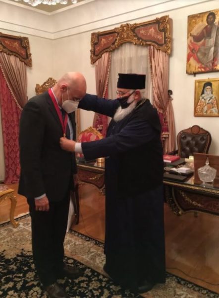Στην Κέρκυρα βρέθηκε το απόγευμα της Παρασκευής 22 Ιανουαρίου 2021 ο Υπουργός Εξωτερικών κ. Νίκος Δένδιας, ο οποίος επισκέφθηκε στο Επισκοπείο τον Σεβασμιώτατο Μητροπολίτη Κερκύρας, Παξών και Διαποντίων Νήσων κ. Νεκτάριο. Με την ευκαιρία της επίσκεψης, ο Σεβ. κ. Νεκτάριος απένειμε στον κ. Δένδια τον χρυσούν σταυρό του Αγίου Σπυρίδωνος μετά πιττακίου, ως πρόσωπο που προβάλλει την Κέρκυρα και τους Παξούς απανταχού της γης και προσφέρει μεγάλες υπηρεσίες στον τόπο. Ο Ποιμενάρχης έδωσε ακόμη στον κ. Δένδια τα αναμνηστικά μετάλλια για την επίσκεψη του Οικουμενικού Πατριάρχη Βαρθολομαίου και τα εγκαίνια του Επισκοπείου της τοπικής Εκκλησίας.