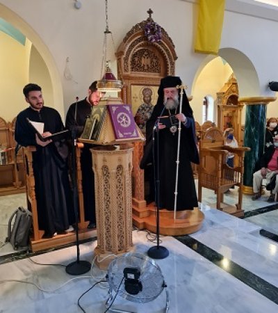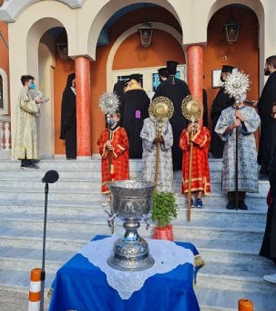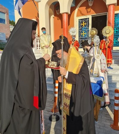 Ο Σεβασμιώτατος υποδέχθηκε αποτμήματα Ιερών Λειψάνων των Αγίων και Ιαματικών Αναργύρων Κοσμά και Διαμιανού, και εν συνεχεία συμπαραστατούμενος από τον Πανοσιολογιώτατο Αρχιμανδρίτη π. Γρηγόριο Λιέπουρη, Αρχιερατικό Επίτροπο Κηφισιάς, τον Πανοσιολογιώτατο Αρχιμανδρίτη π. Ευστράτιο Δελατόλα, τους ιερείς των όμορων Ενοριών και τους ιερείς του Ναού, τέλεσε προ των θυρών τον Αγιασμό των Θυρανοιξίων και κατόπιν στον νέο Ιερό Ναό, τον Εσπερινό της Αποδόσεως της Δεσποτικής Εορτής της Αναλήψεως. Πρό της Απολύσεως ο Προϊστάμενος του Ιερού Ναού, Πανοσιλογιώτατος Αρχιμανδρίτης π. Νικόδημος Παχόγλου, προσφώνησε τον Σεβασμιώτατο Ποιμενάρχη, και αναφέρθηκε στην Ιστορία του Ιερού Ναού της Αγίας Μαρίνης Μελισσίων.