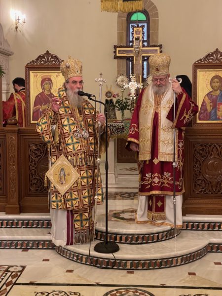 Ο Σεβ. Ποιμενάρχης κ. Αμφιλόχιος, με λόγους καρδιακούς, χαιρέτισε, καλωσόρισε και ευχαρίστησε τους δύο Αρχιερείς και, εκ μέρους του ι. προσκυνήματος, προσφέρθηκε εις τον Θεοφ. Επίσκοπο Δορυλαίου κ. Δαμασκηνό ιερό εγκόλπιο, δια την «έμπρακτη στήριξη και συμβολή του από τις πρώτες εργασίες  εις το ι. προσκύνημα». Ακολούθως αναφέρθηκε στο «θαύμα» που συντελείται στην σύγχρονη αυτή  «κολυμβήθρα του Σιλωάμ», όπως είπε, καθώς ότι έχει γίνει τόσο στον ι. προσκυνηματικό Ναό, όσο και στο παρακείμενο κτιριακό συγκρότημα που ανεγείρεται δια την κάλυψη των αναγκών των ολοένα αυξανόμενων προσκυνητών, είναι έργο αγάπης και προσφοράς ευεργετημένων από τον Άγιο πιστών. «Ξεκινήσαμε το έργο αυτό με 5.000€ στο ταμείο της Ερανικής Επιτροπής» ανέφερε και συνέχισε: «Δόξα τω Θεώ που στους απαράκλητους καιρούς μας, μας χαρίζει την δρόσο της παρουσίας και παρηγορίας του οσίου πατρός ημών Νικηφόρου του λεπρού, του θαυματουργού», κατέληξε καλωσορίζοντας τα πλήθη των προσκυνητών που συνέρρευσαν το εόρτιο διήμερο, τηρώντας τα μέτρα της περιόδου. Προσκυνητές απ΄ όλη την Κρήτη, από Κύμη, Εύβοια, Μακεδονία και αλλού, παρά τις δυσκολίες της περιόδου, εκπληρώνοντας το τάμα τους, μετείχαν της ιεράς πανηγύρεως· προσκύνησαν τα χαριτόβρυτα ιερά λείψανα του Οσίου Νικηφόρου και κατέθεσαν ενώπιον τους προσευχές και δεήσεις, ικεσίες και ευχαριστίες. Ο Σεβασμιώτατος κ. Αμφιλόχιος ευχαρίστησε όλους τους επώνυμους και ανώνυμους δια τις προσφορές της αγάπης τους, τους πρωτοψάλτες του ι. Μητροπολιτικού Ναού και Αγ. Σπυρίδωνος κ.κ. Βακάκη Αντώνιο και Χαχλάκη Γεώργιο αντίστοιχα και, ιδιαιτέρως τον Παν. Αρχ. π. Χρύσανθο (Τσαχάκη), υπεύθυνο του ι. προσκυνήματος δια τον «πολύ κόπο και μόχθο του».