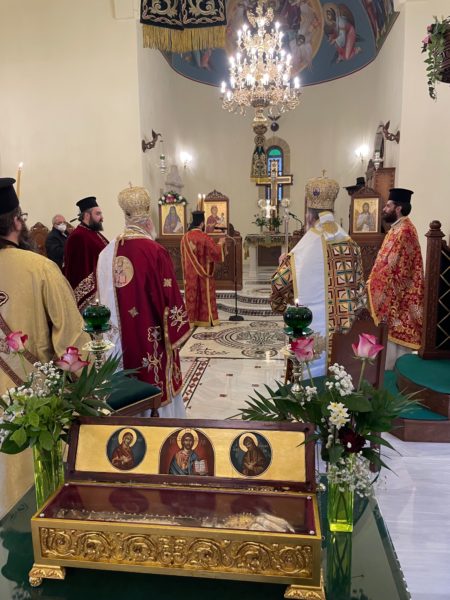 Την κυριώνυμο ημέρα της πανηγυρικής Θείας Λειτουργίας προεξήρχε ο Σεβ. Μητροπολίτης Κυδωνίας και Αποκορώνου κ. Δαμασκηνός, συλλειτουργούντος του Σεβ. Ποιμενάρχου κ. Αμφιλοχίου. Τόσο κατά την Ι. Παράκληση όσο και την Θεία Λειτουργία μνημονεύθηκαν τα 20.000 και πλέον χιλιάδες ονόματα που έχουν καταγραφεί στην παρρησία του ι.προσκυνήματος.