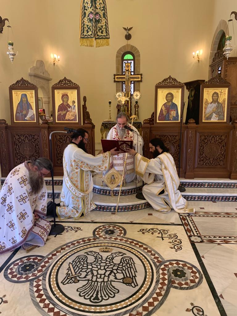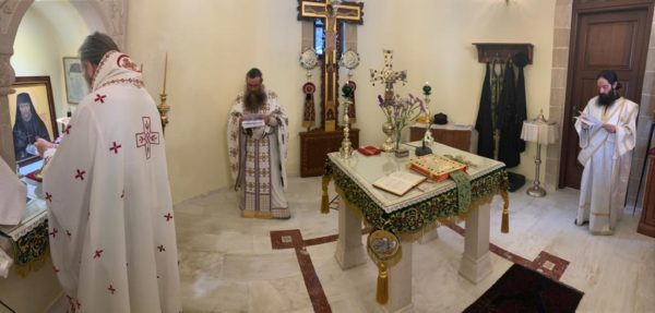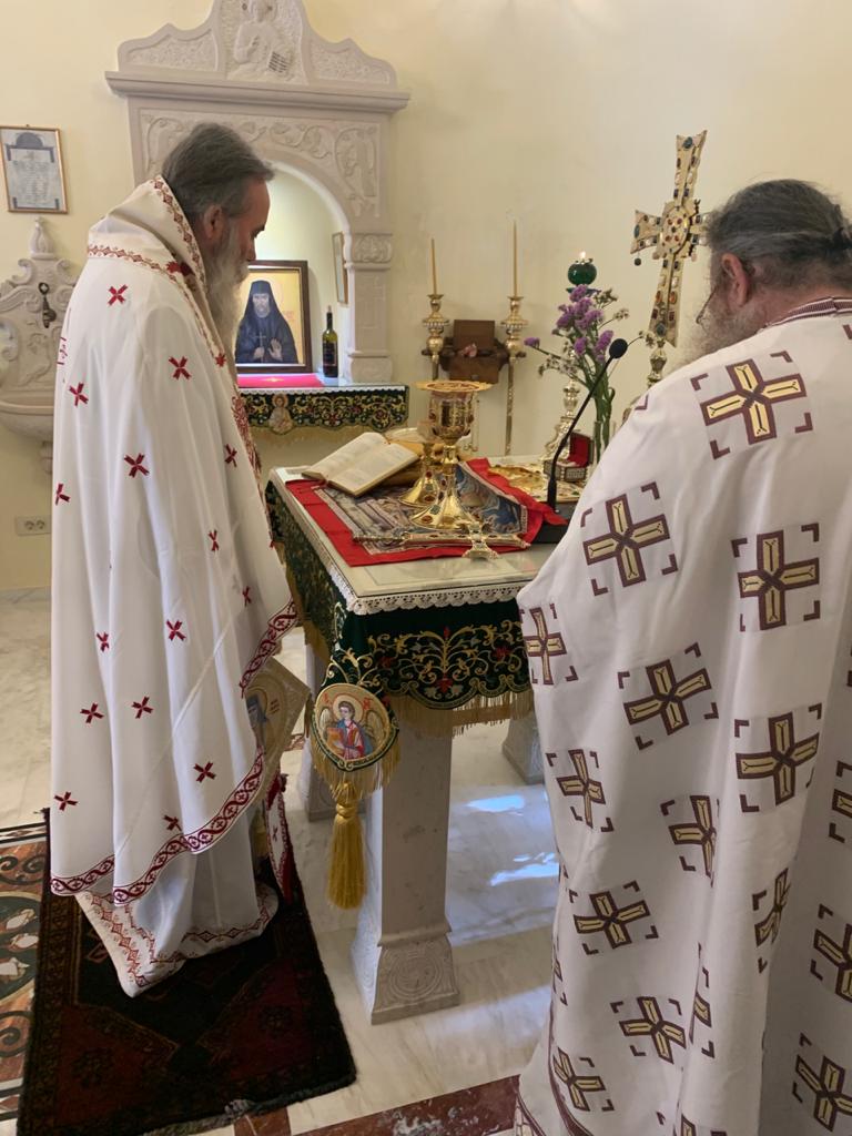 Ο Σεβασμιώτατος τέλεσε (ως Ιερεύς) Θεία Λειτουργία, συλλειτουργούντων αδελφών εκ της Ι. Πατριαρχικής Μονής Γωνιάς. Στο τέλος δε αναπέμφθηκε ειδική δέησις-προσευχή της Ι. Επαρχιακής Συνόδου της Εκκλησίας Κρήτης: «υπέρ ιάσεως των εκ της πανδημίας ασθενούντων, ενισχύσεως των Ιατρών, Νοσηλευτών και αιωνίου μνήμης των εκ της νόσου τελειωθέντων».