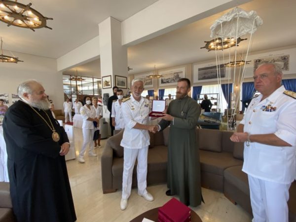 Παράλληλα και ο Αρχηγός προσέφερε μία πλακέτα στον Σεβασμιώτατο Μητροπολίτη ως ένδειξη ευγνωμοσύνης για την σημερινή ευλογία.