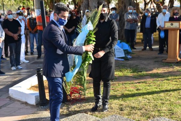 Ακολούθησε προσκλητήριο πεσόντων, κατάθεση στεφάνων, ενός λεπτού σιγή και ανάκρουση του εθνικού μας ύμνου από την φιλαρμονική του Δήμου.