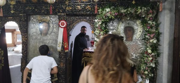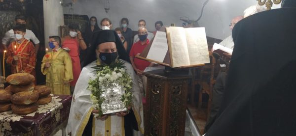 Φέτος, λόγω των ιδιαίτερων συνθηκών δεν πραγματοποιήθηκε η τράπεζα της Παναγίας. Χθες τελέστηκε η ακολουθία του πανηγυρικού εσπερινού με τα εγκώμια και το κόλλυβο της Παναγίας, προεξάρχοντος του Σεβασμιωτάτου.