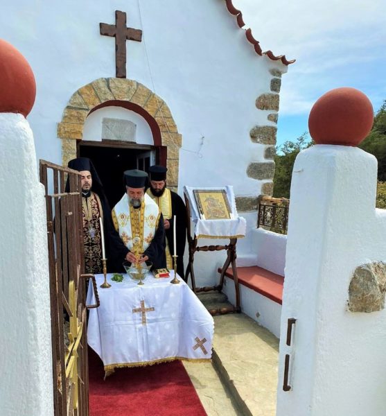 Με την εντολή και την ευλογία του Σεβασμιωτάτου Μητροπολίτου Λέρου και Καλύμνου κ. Παϊσίου, στο Φαρμακονήσι μετέβη ο Θεοφιλέστατος Επίσκοπος Στρατονικείας κ. Στέφανος, την Τετάρτη 5 Μαΐου 2021, προκειμένου να τελέσει Αγιασμό, επ’ ευκαιρία συμπληρώσεως 100 χρόνων από την ανέγερση του Ιερού Ναϋδρίου του Αγίου Γεωργίου, αλλά και λόγω της ριζικής ανακαίνισής του από το προσωπικό της Μονάδας και του Φυλακίου.