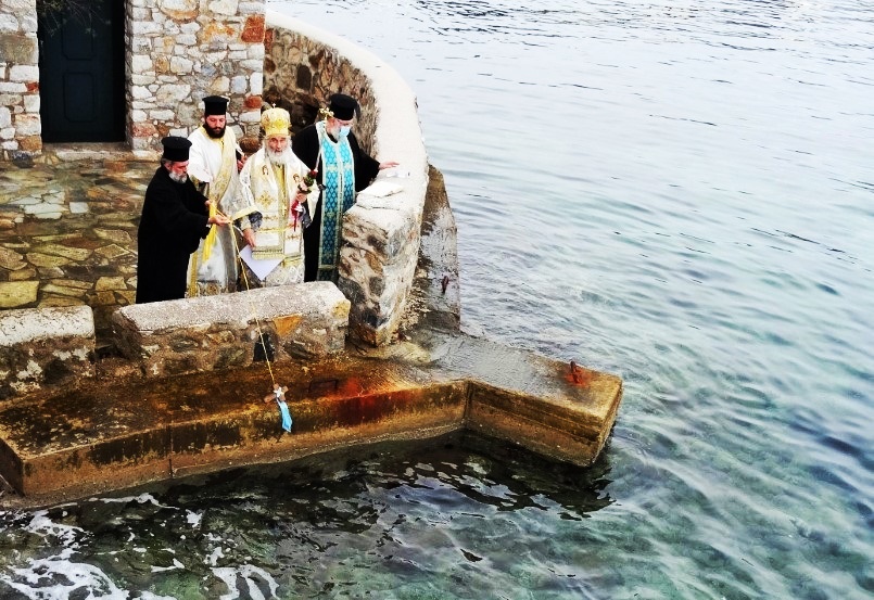 Ο Μητροπολίτης ευλόγησε τα ύδατα της θαλάσσης στο Μητροπολιτικό Οίκο, άνευ συμμετοχής πιστών.
