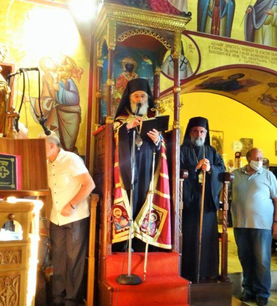 Ο Σεβασμιώτατος Μητροπολίτης κ. Παΐσιος, αφού είχε επιστρέψει από την Αστυπάλαια που είχε μεταβεί για τον εορτασμό του Δεκαπενταύγουστου στην Παναγία την Πορταΐτισσα, χοροστάτησε στον Εσπερινό της παραμονής.