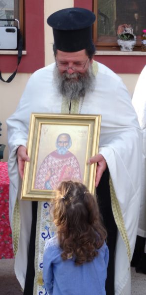 Μετά το πέρας της Θείας Λειτουργίας, η οικογένεια Αναστασίου, παρέθεσε καφέ και διάφορα παραδοσιακά εδέσματα. Ο Μητροπολίτης ευχαρίστησε τους κτήτορες και τους ευχήθηκε όπως «Κύριος ο Θεός, δια πρεσβειών του Οσίου και Θεοφόρου Πατρός ημών Παϊσίου, χαρίζη πλούσια τα αγαθά Του».