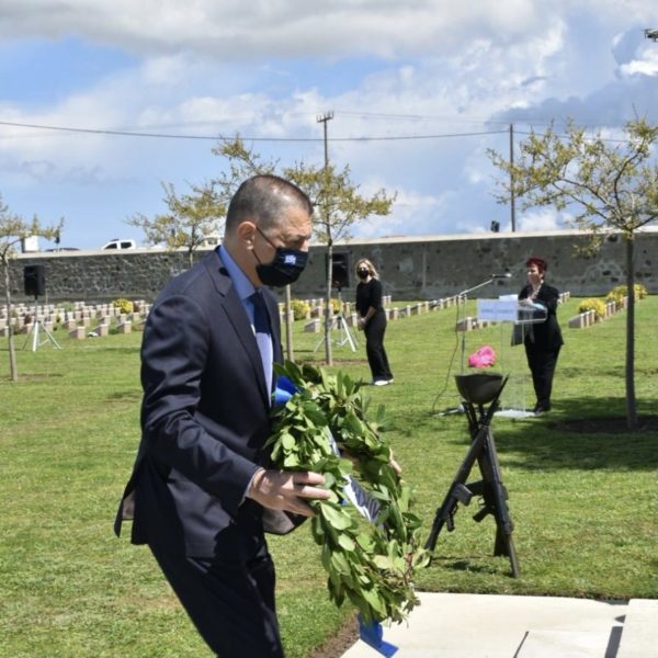 Κατέθεσε στεφάνι κατά την επιμνημόσυνη δέηση προς τιμήν των πεσόντων στο Κοινοπολιτειακό Κοιμητήριο Μούδρου. Την επιμνημόσυνη δέηση τέλεσε ο Μητροπολίτης Λήμνου & Αγίου Ευστρατίου κ. Ιερόθεος Γ΄ και παρέστησαν επίσης ο Πρέσβης της Αυστραλίας στην Ελλάδα κ. Arthur Spyrou, ο Περιφερειάρχης Βορείου Αιγαίου κ. Κωνσταντίνος Μουτζούρης, ο Έπαρχος Λήμνου κ. Άγγελος Βλαττάς – Λαμπρινός και ο Δήμαρχος Λήμνου κ. Δημήτρης Μαρινάκης.