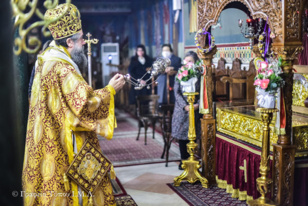 Το πρωί της Β´ Κυριακής της κατανυκτικής περιόδου του Τριωδίου που διανύουμε, της πανηγυρικής Αρχιερατικής Θείας Λειτουργίας, προεξήρχε ο Σεβασμιώτατος Μητροπολίτης Σερρών και Νιγρίτης κ.κ. Θεολόγος, Τοποτηρητής της καθ´ ημάς Μητροπόλεως, πλαισιωμένος από τον Καθηγούμενο της Ιεράς Μονής Αγίας Τριάδος Πέντε Βρύσεων και Αρχιερατικό επίτροπο Όσσης, Πανοσιολ. Αρχιμ. π. Ιωάννη Αρσενιάδη, τον Γενικό Αρχιερατικό Επίτροπο Αιδεσιμολ. Πρωτοπρ. π. Αναστάσιο Παρούτογλου και τους Διακόνους της Ι. Μητροπόλεως Σερρών και Νιγρίτης π. Δαυίδ Σταυρινό και Λαγκαδά π. Ραφαήλ Κυρικλίδη. Στον πανηγυρίζοντα ιερό Ναό εκκλησιάστηκε και ο Δήμαρχος Λαγκαδά κ. Ιωάννης Ταχματζίδης με ευαρίθμους, λόγω των μέτρων, συνεργάτες του.