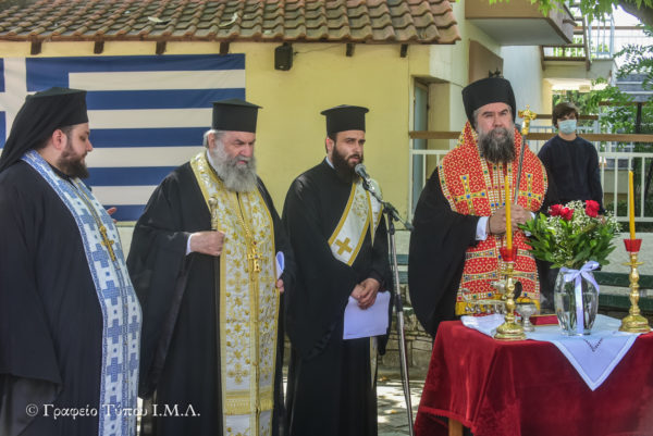Στον σύντομο χαιρετισμό του ο Σεβασμιώτατος Τοποτηρητής σημείωσε ότι «η Ελευθερία είναι προϋπόθεση ζωής και δημιουργίας για τον κάθε άνθρωπο, ιδιαιτέρως δε για εμάς τους Έλληνες. Δεν χρειάζεται να μένουμε μόνο στην επιφάνεια όλων αυτών των επετειακών εκδηλώσεων, αλλά θα πρέπει να εντρυφήσουμε στα νοήματα αυτών των επετείων και να σπουδάσουμε το τι θέλουν να μας πουν και να μας δείξουν ουσιαστικά, και κυρίως μιμούμενοι σήμερα τις αρετές των πατέρων και των προγόνων μας, να δημιουργήσουμε όλες εκείνες τις προϋποθέσεις για την πρόοδο και την αξιοπρέπεια της Πατρίδος μας, η οποία ακόμα και σήμερα ευρίσκεται στην δίνη ενός επικίνδυνου κυκλώνα».