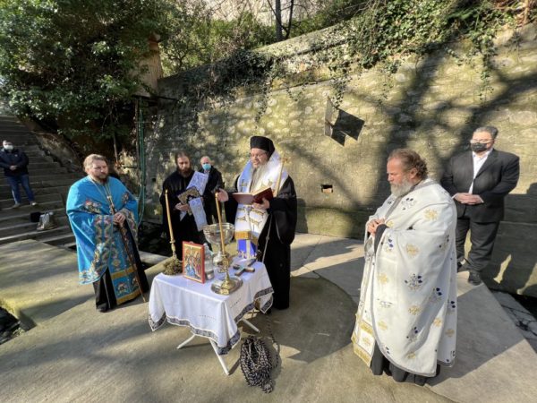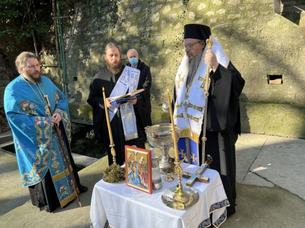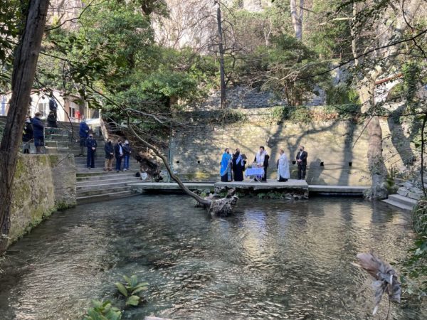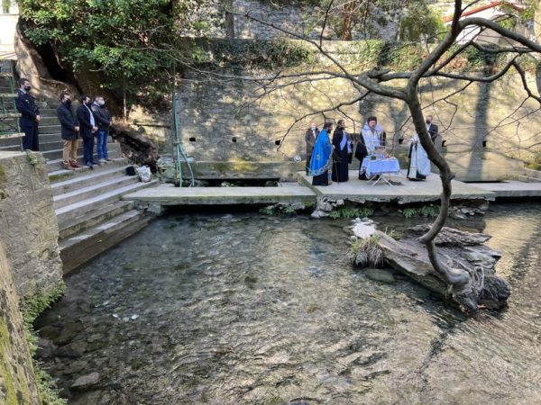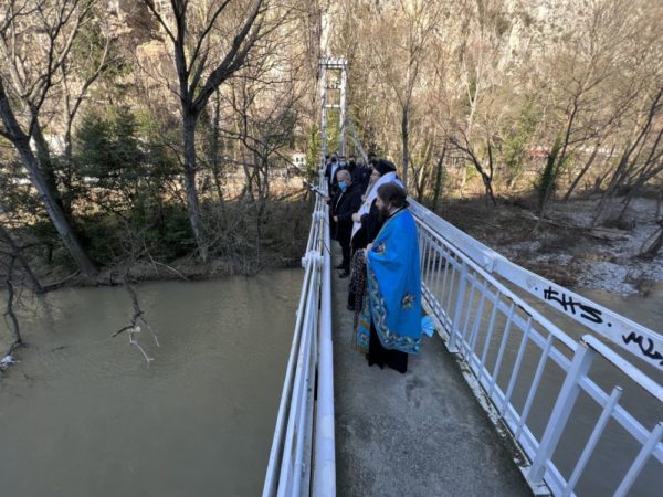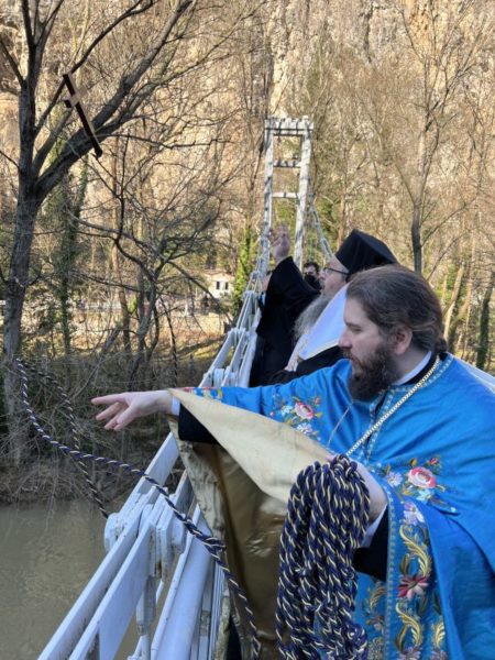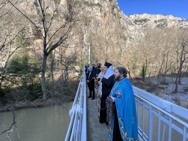 Παραμονή της Μεγάλης Δεσποτικής εορτής των Θεοφανείων, ο Σεβασμιώτατος Μητροπολίτης Λαρίσης και Τυρνάβου κ. Ιερώνυμος μετέβη στο Ιερό Προσκύνημα Αγίας Παρασκευής Τεμπών και τέλεσε τον Μεγάλο Αγιασμό έμπροσθεν του Ιερού Αγιάσματος και ακολούθως, ευλόγησε τα Ύδατα του ποταμού Πηνειού επί της εκεί κρεμαστής γέφυρας.