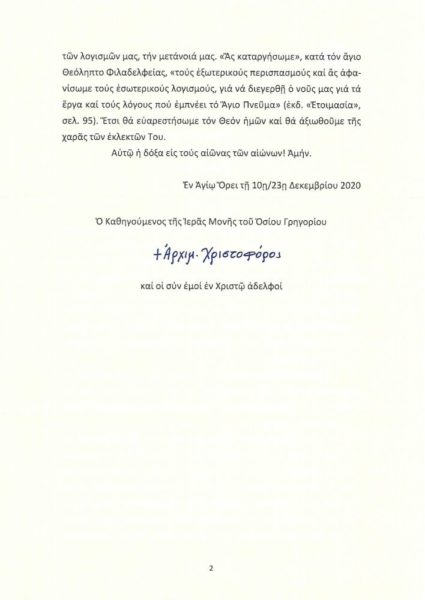 Τις εόρτιες ευχές του Καθηγουμένου της Ιεράς Μονής Οσίου Γρηγορίου Αγίου Όρους, Αρχιμανδρίτη Χριστοφόρου, δέχθηκε ο Σεβασμιώτατος Μητροπολίτης Λαρίσης και Τυρνάβου κ. Ιερώνυμος.