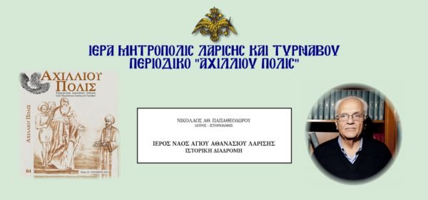 Άρθρο του κ. Νικολάου Παπαθεοδώρου, Ιατρού, υπό τον τίτλο “Iερός Ναός Αγίου Αθανασίου Λαρίσης – Ιστορική Διαδρομή”, το οποίο μπορείτε να διαβάσετε διαδικτυακά στην περιοδική Έκδοση ΑΧΙΛΛΙΟΥ ΠΟΛΙΣ της Ιεράς Μητροπόλεως Λαρίσης και Τυρνάβου.