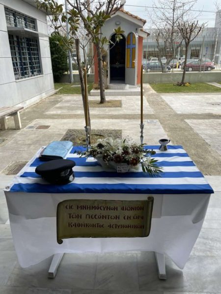 Τρισάγιο τελέσθηκε και στον προαύλιο χώρο του Αστυνομικού Μεγάρου Λάρισας στη μνήμη των θανόντων στο καθήκον αστυνομικών, ενώπιον του ειδικού μνημείου που έχει τοποθετηθεί για να ενθυμίζει σε όλους τους Αστυνομικούς τους κεκοιμημένους συναδέλφους τους.