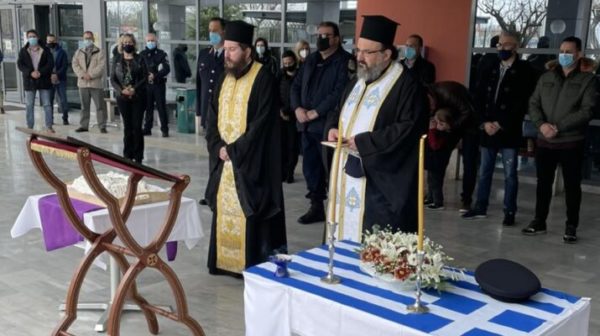 Η επιμνημόσυνη δέηση τελέστηκε, τηρουμένων των υγιειονομικών μέτρων, από τον Πρωτοσύγκελλο της Μητροπόλεως π. Ιγνάτιο Μουρτζανό και τον εντεταλμένο κληρικό για τα Σώματα Ασφαλείας π. Βαρθολομαίο Μαργαριτόπουλο, παρουσία του Αστυνομικού Διευθυντού Λαρίσης κ. Χρήστου Σιμούλη και του προέδρου της ένωσης Αστυνομικών Λαρίσης κ. Αθανασίου Νταβούρα.