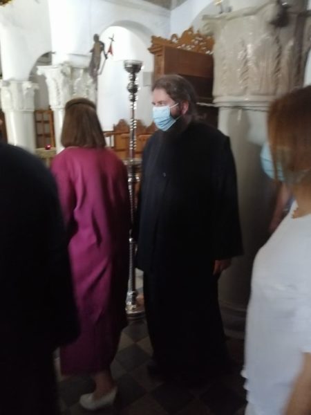 Την κ. Μενδώνη συνοδεύει από το πρωί εκ μέρους του Σεβασμιωτάτου Μητροπολίτου Λαρίσης και Τυρνάβου κ. Ιερωνύμου, ο Πρωτοσύγκελλος αυτού, π. Ιγνάτιος Μουρτζανός και ο Αρχιερατικός Επίτροπος Τυρνάβου, π. Γεώργιος Παπαϊωάννου.